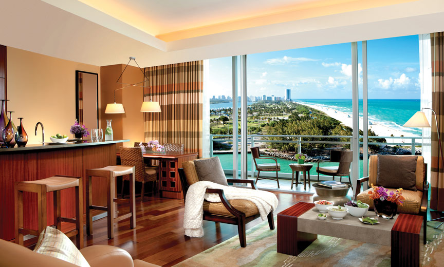 What says Miami like a soaking in a tub overlooking the ocean with a bucket of Champagne on ice? How about adding a snack from the full-service gourmet kitchen in your floor-through suite atop The Ritz-Carlton Bal Harbour (ritzcarlton.com). With private terraces that overlook the ocean and the 99-acre nude beach at Haulover Park, the suites at The Ritz-Carlton Bal Harbour deliver you into a lush life marked by mahogany, leather, and crystal. Asprey toiletries fragrance the air with hints of citrus and jacaranda. Have an in-room massage or head to Exhale Spa, the 10,000-foot wellness sanctuary overlooking the water. And should you feel overwhelmed by the 100-plus luxury boutiques located in the lushly-landscaped retail oasis, The Ritz-Carlton Bal Harbour offers a couture concierge who remains on call for wardrobe consultation, so you’ll be dressed just right for a visit to Sunset Lounge at Artisan Beach House, a beach-bright restaurant with views onto Haulover Cut.