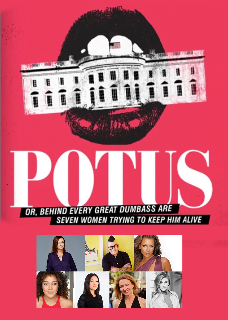 A new Broadway play from a new Broadway playwright arrives with Selina Fillinger’s POTUS: Or, Behind Every Great Dumbass are Seven Women Trying to Keep Him Alive (Shubert Theatre, opens May 9 through August 14), directed by Susan Stroman. The starry ensemble cast of Lilli Cooper, Lea DeLaria, Rachel Dratch, Julianne Hough, Suzy Nakamura, Julie White, and Vanessa Williams make this White House comedy seem like a potentially good time.